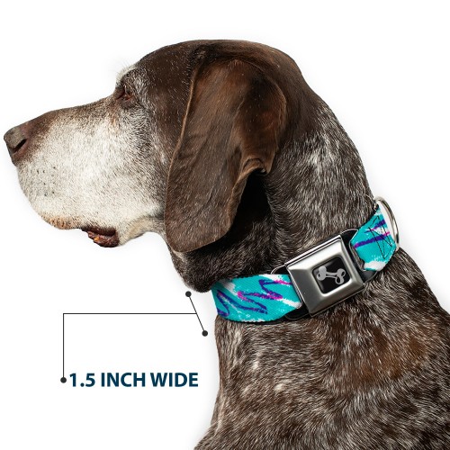 Dog Bone Black/Silver Seatbelt Buckle Collar – Jazzy Wave Scribble White/Teal/Purple