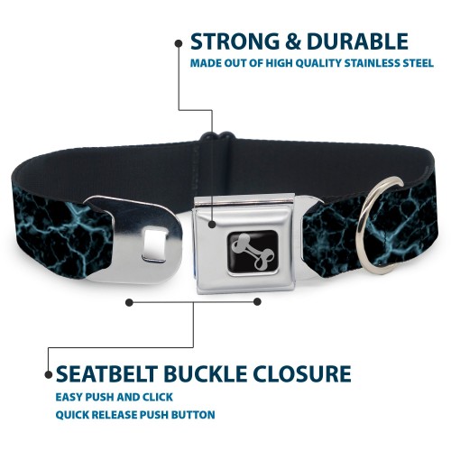 Dog Bone Black/Silver Seatbelt Buckle Collar – Marble Black/Baby Blue
