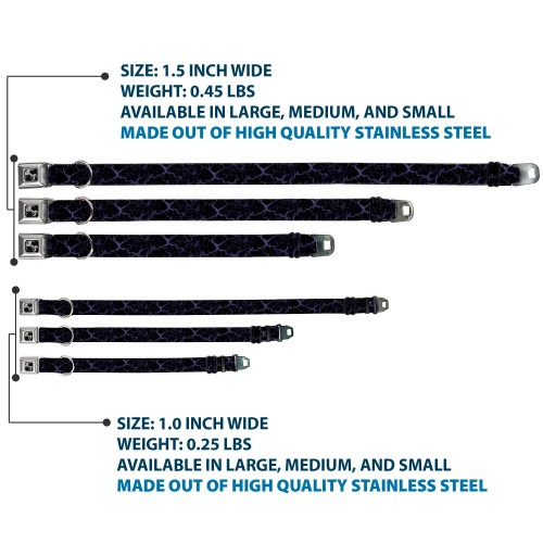 Dog Bone Black/Silver Seatbelt Buckle Collar – Marble Black/Purple