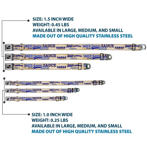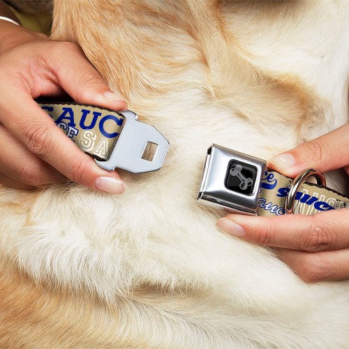 Dog Bone Black/Silver Seatbelt Buckle Collar – SAUCE Typography Collage Tan/White/Blue