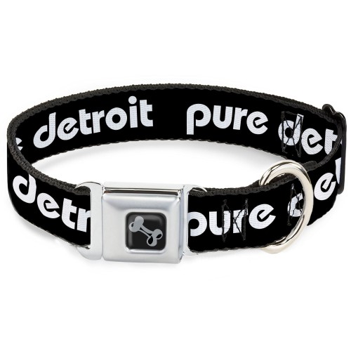 Dog Bone Black/Silver Seatbelt Buckle Collar – Stripes Purple/White/Gray
