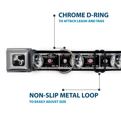 Dog Bone Seatbelt Buckle Collar – 100 Dollar Bill X-Ray Black/White