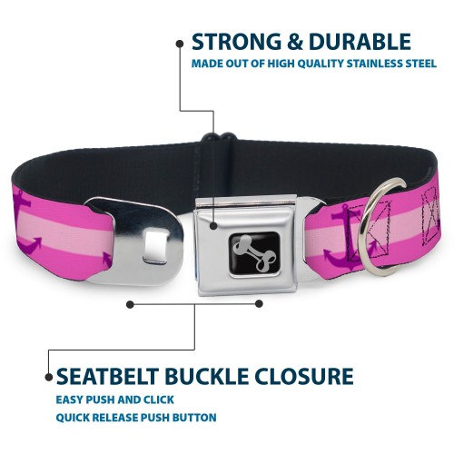 Dog Bone Seatbelt Buckle Collar – Anchor/Stripe Pinks/Purple