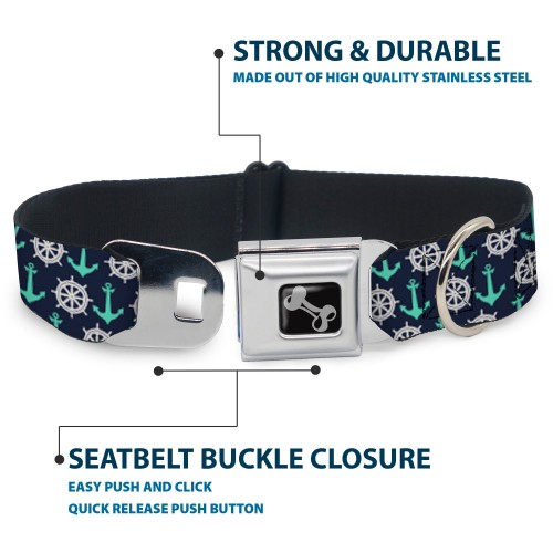 Dog Bone Seatbelt Buckle Collar – Anchor2/Helm Monogram Navy/Turquoise/White