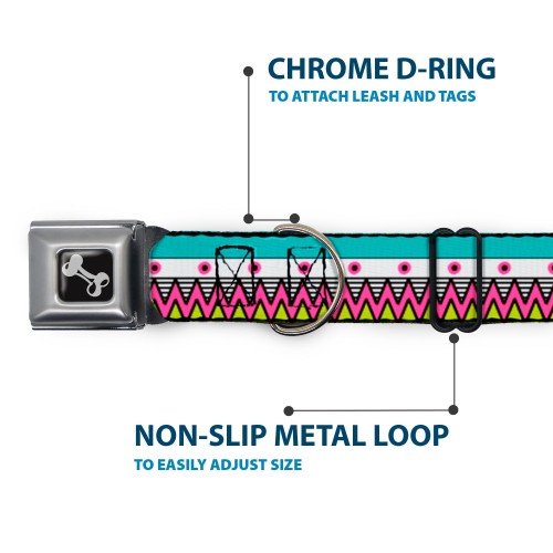Dog Bone Seatbelt Buckle Collar – Aztec 14 Seafoam Green/White/Pink/Lime Green/Black