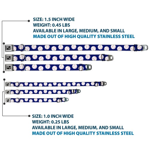 Dog Bone Seatbelt Buckle Collar – Baseballs Scattered Blue