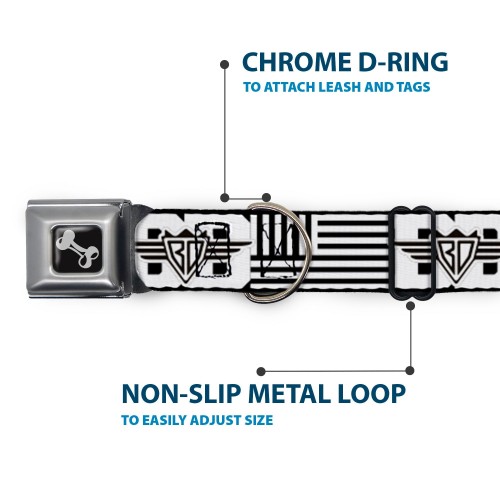 Dog Bone Seatbelt Buckle Collar – BD Logo/American Stripe Flag White/Black