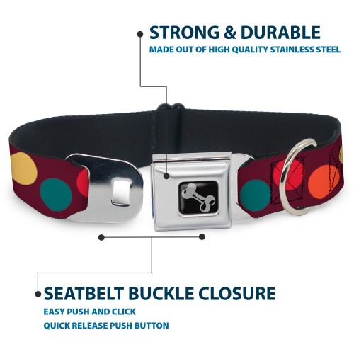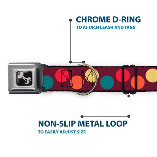 Dog Bone Seatbelt Buckle Collar – Big Dots Purple/Multi Pastel