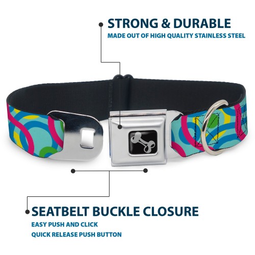 Dog Bone Seatbelt Buckle Collar – Bullseye Stacked Swirl Blues/Green/Yellow/Pink