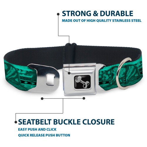 Dog Bone Seatbelt Buckle Collar – Cali Bear/Palm Trees/Geometric Green