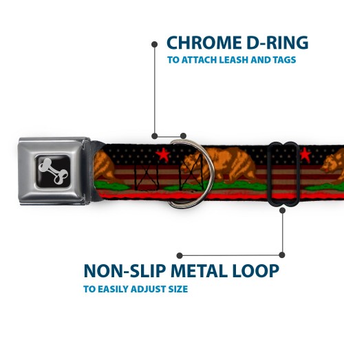 Dog Bone Seatbelt Buckle Collar – Cali Bear/Star/Stripe/US Flag Stretch