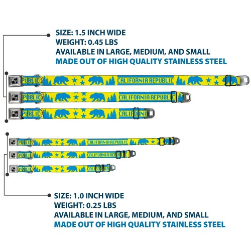 Dog Bone Seatbelt Buckle Collar – CALIFORNIA REPUBLIC/Bear/Stars Silhouette Yellow/Blue