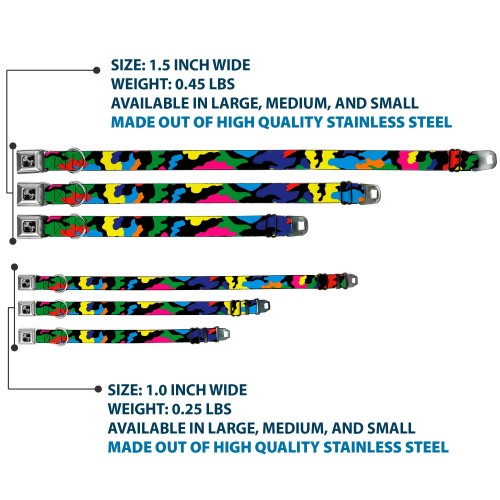 Dog Bone Seatbelt Buckle Collar – Camo Multi Neon