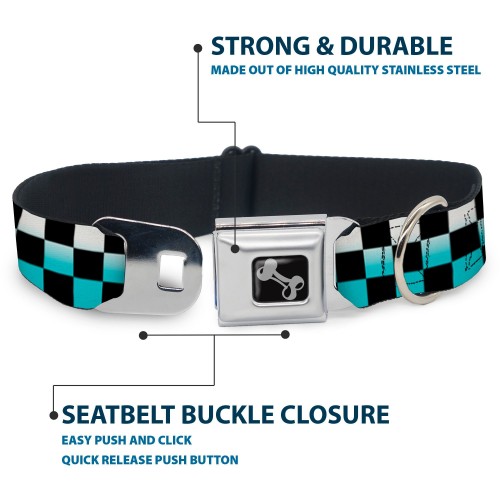 Dog Bone Seatbelt Buckle Collar – Checker Black/Ombre Turquoise
