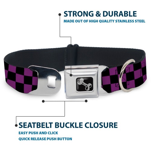 Dog Bone Seatbelt Buckle Collar – Checker Black/Purple