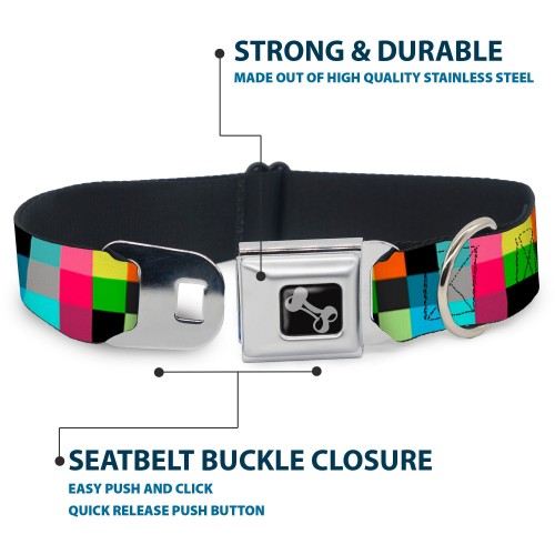 Dog Bone Seatbelt Buckle Collar – Checker Bright Pastel