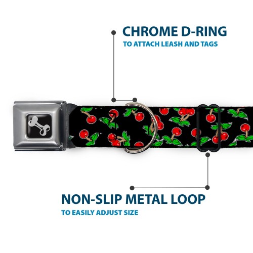 Dog Bone Seatbelt Buckle Collar – Cherries Scattered Black