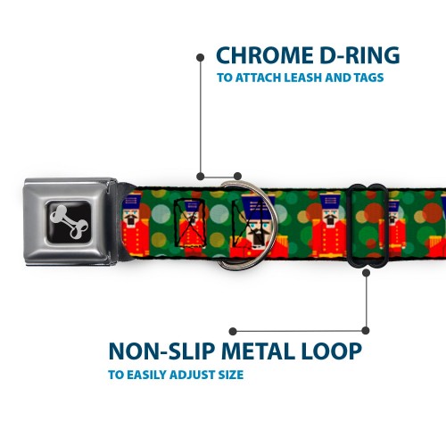 Dog Bone Seatbelt Buckle Collar – Christmas Nutcracker/Polka Dots Greens/Gold/Red