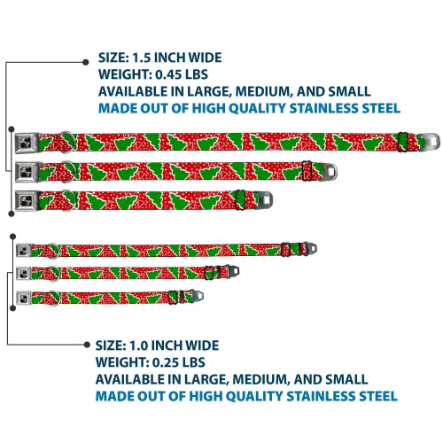 Dog Bone Seatbelt Buckle Collar – Christmas Trees/Stars Red/White/Green