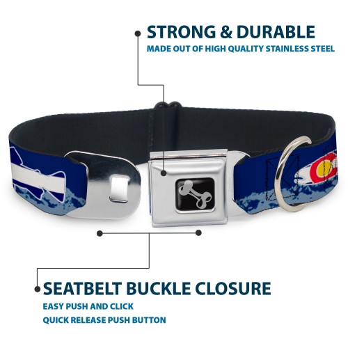 Dog Bone Seatbelt Buckle Collar – Colorado Trout Flag Blue/White/Red/Yellow