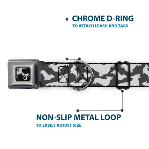 Dog Bone Seatbelt Buckle Collar – Corgi Silhouette Poses Grays