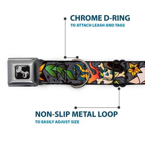 Dog Bone Seatbelt Buckle Collar – Death or Glory Gray