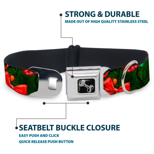 Dog Bone Seatbelt Buckle Collar – Decorated Tree2 w/Bows/Lights/Candy Canes