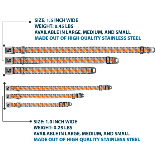 Dog Bone Seatbelt Buckle Collar – Diamond Plaid Grays/Orange