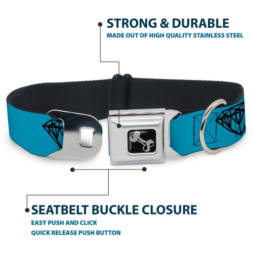Dog Bone Seatbelt Buckle Collar – Diamond Sketch Turquoise/Black