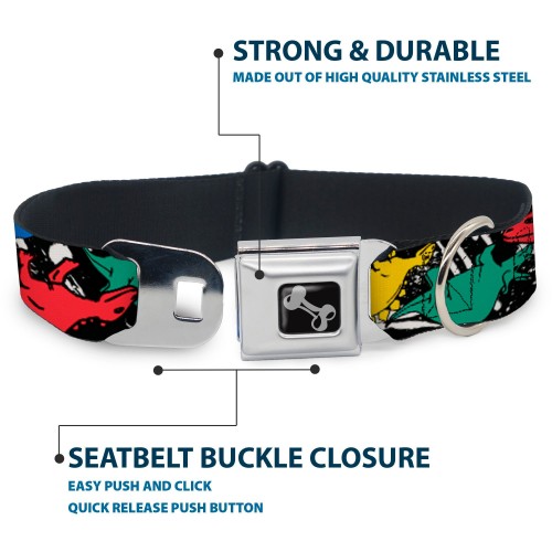 Dog Bone Seatbelt Buckle Collar – Dinosaurs/Paint Splatter Black/White/Multi Color