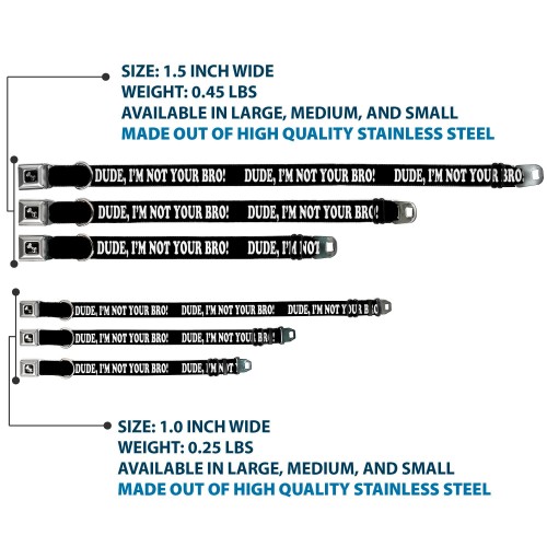 Dog Bone Seatbelt Buckle Collar – DUDE, I’M NOT YOUR BRO! Black/White