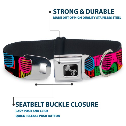 Dog Bone Seatbelt Buckle Collar – Eighties Shades Tapes Black/Neon