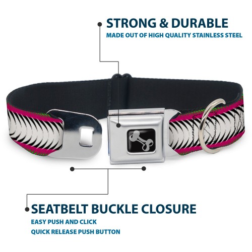 Dog Bone Seatbelt Buckle Collar – Fish Tail Fuchsia/Black/White