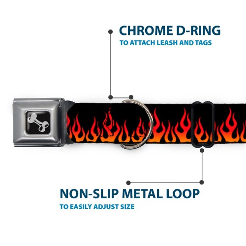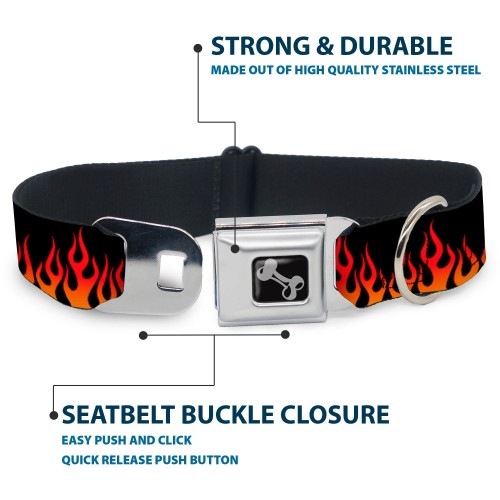 Dog Bone Seatbelt Buckle Collar – Flames Black/Orange/Red