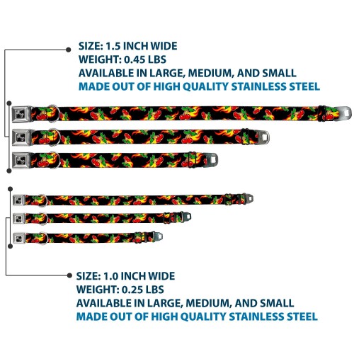Dog Bone Seatbelt Buckle Collar – Flaming Cherries Scattered Black