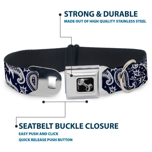 Dog Bone Seatbelt Buckle Collar – Floral Paisley3 Blue/White/Gray