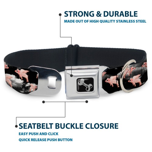 Dog Bone Seatbelt Buckle Collar – Flying Pigs Black/White/Pink