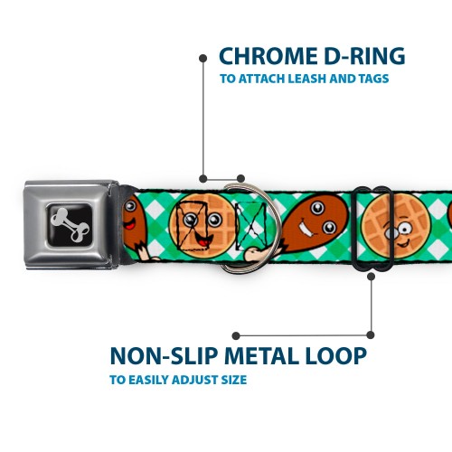 Dog Bone Seatbelt Buckle Collar – Fried Chicken & Waffles Plaid White/Green
