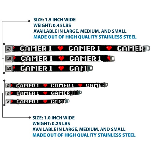 Dog Bone Seatbelt Buckle Collar – GAMER 1/Heart 8-Bit Black/White/Red