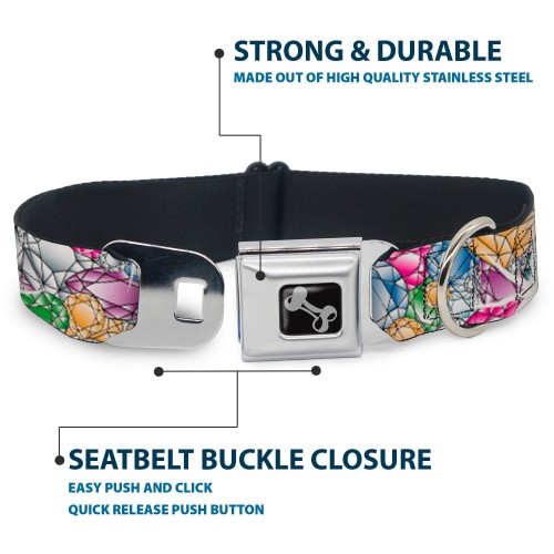 Dog Bone Seatbelt Buckle Collar – Gems Stacked Multi Color