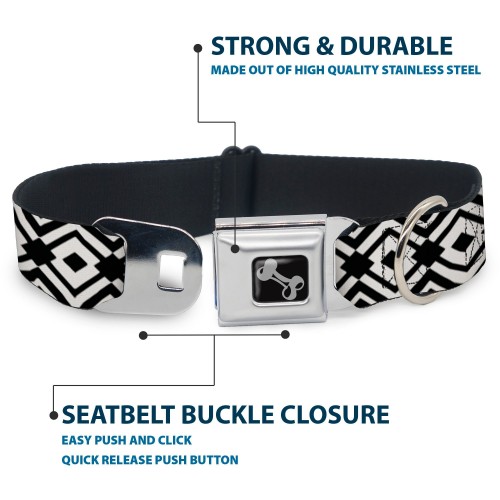 Dog Bone Seatbelt Buckle Collar – Geometric Diamond2 Black/White/Black