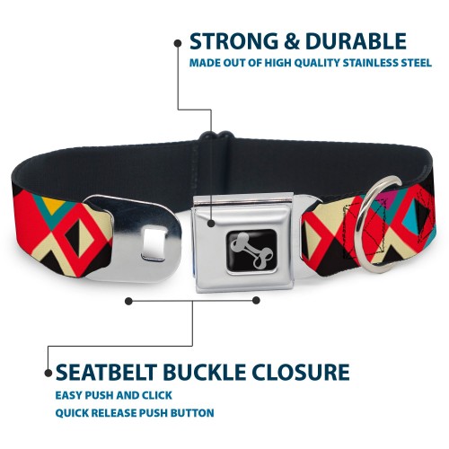 Dog Bone Seatbelt Buckle Collar – Geometric9 Black/Red/Turquoise/Ivory