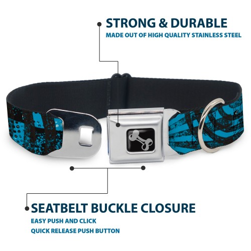 Dog Bone Seatbelt Buckle Collar – Grunge Chaos Blue