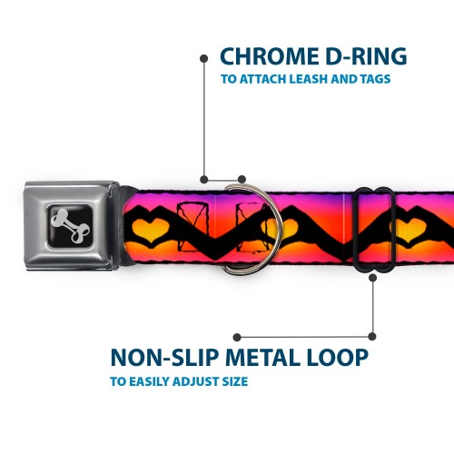 Dog Bone Seatbelt Buckle Collar – Hand Heart Silhouette Ombre Purples/Orange/Pinks