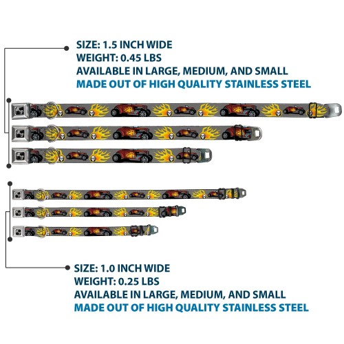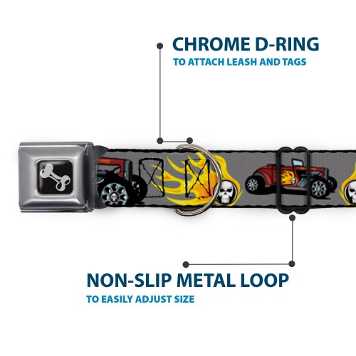 Dog Bone Seatbelt Buckle Collar – Hot Rod w/Flame Skull