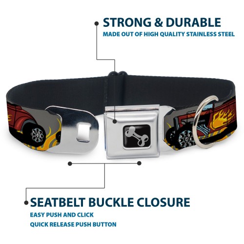 Dog Bone Seatbelt Buckle Collar – Hot Rod w/Flames