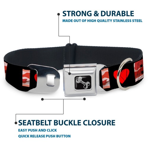 Dog Bone Seatbelt Buckle Collar – I “Heart” BACON Black/Bacon