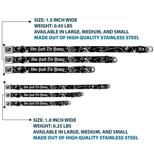 Dog Bone Seatbelt Buckle Collar – Live Hard Die Young Black/White