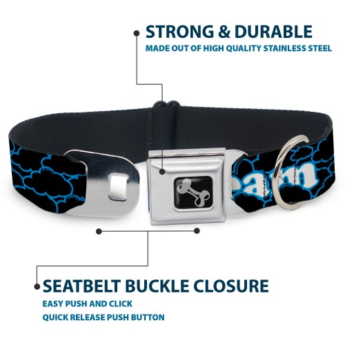 Dog Bone Seatbelt Buckle Collar – LIVING THE DREAM/Clouds Black/Blue/White