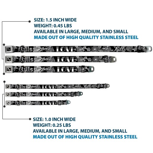 Dog Bone Seatbelt Buckle Collar – Love Kills Black/White